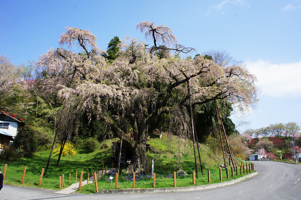 郡山市中田町の紅枝垂地蔵桜は葉桜になってきましたが、さくらはなもも回廊のあでやかさは今が一番かもしれません。