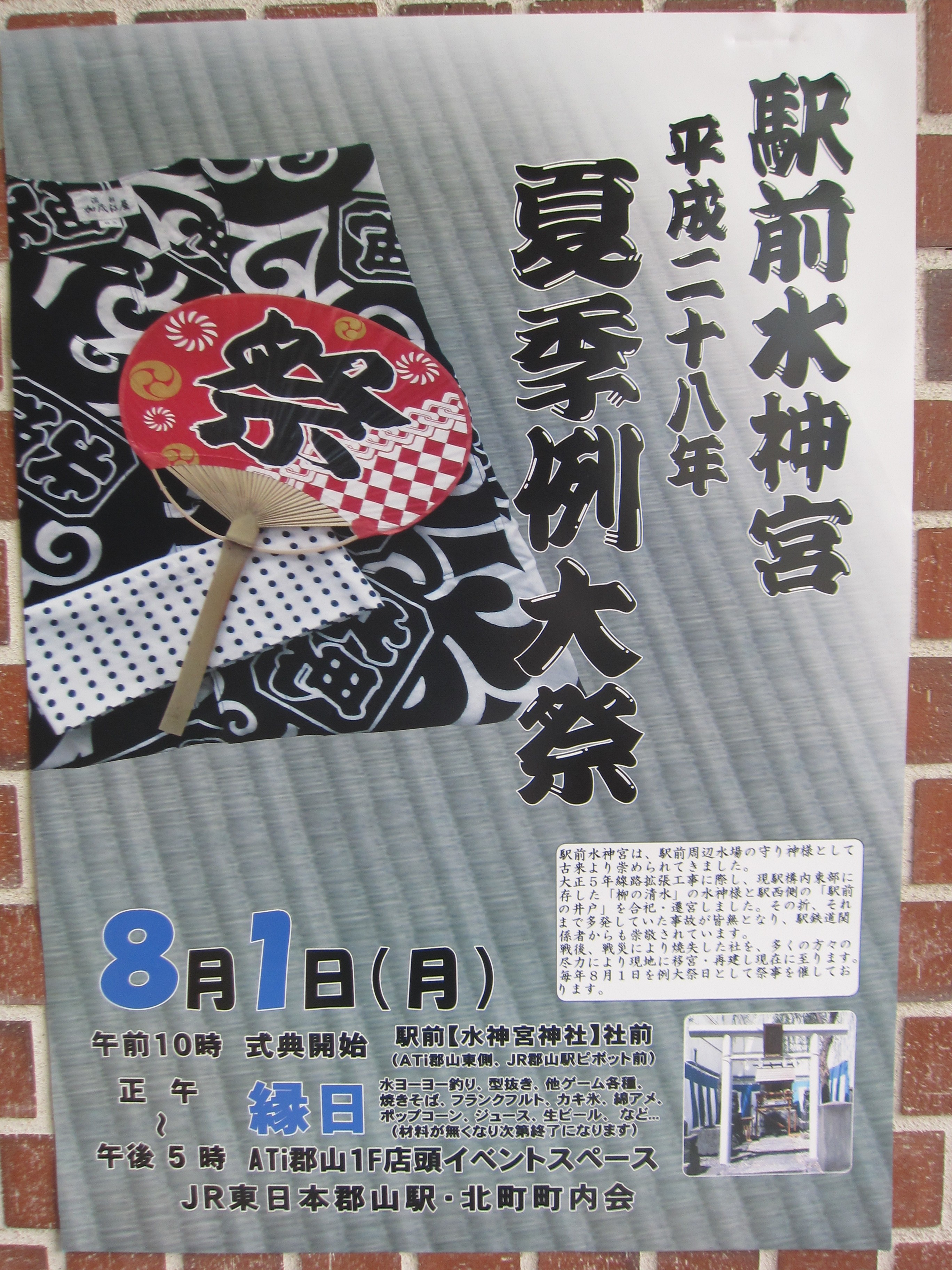 〇場所 郡山駅前西口(Ati郡山東側、JR郡山駅ピボット前)駅前水神宮