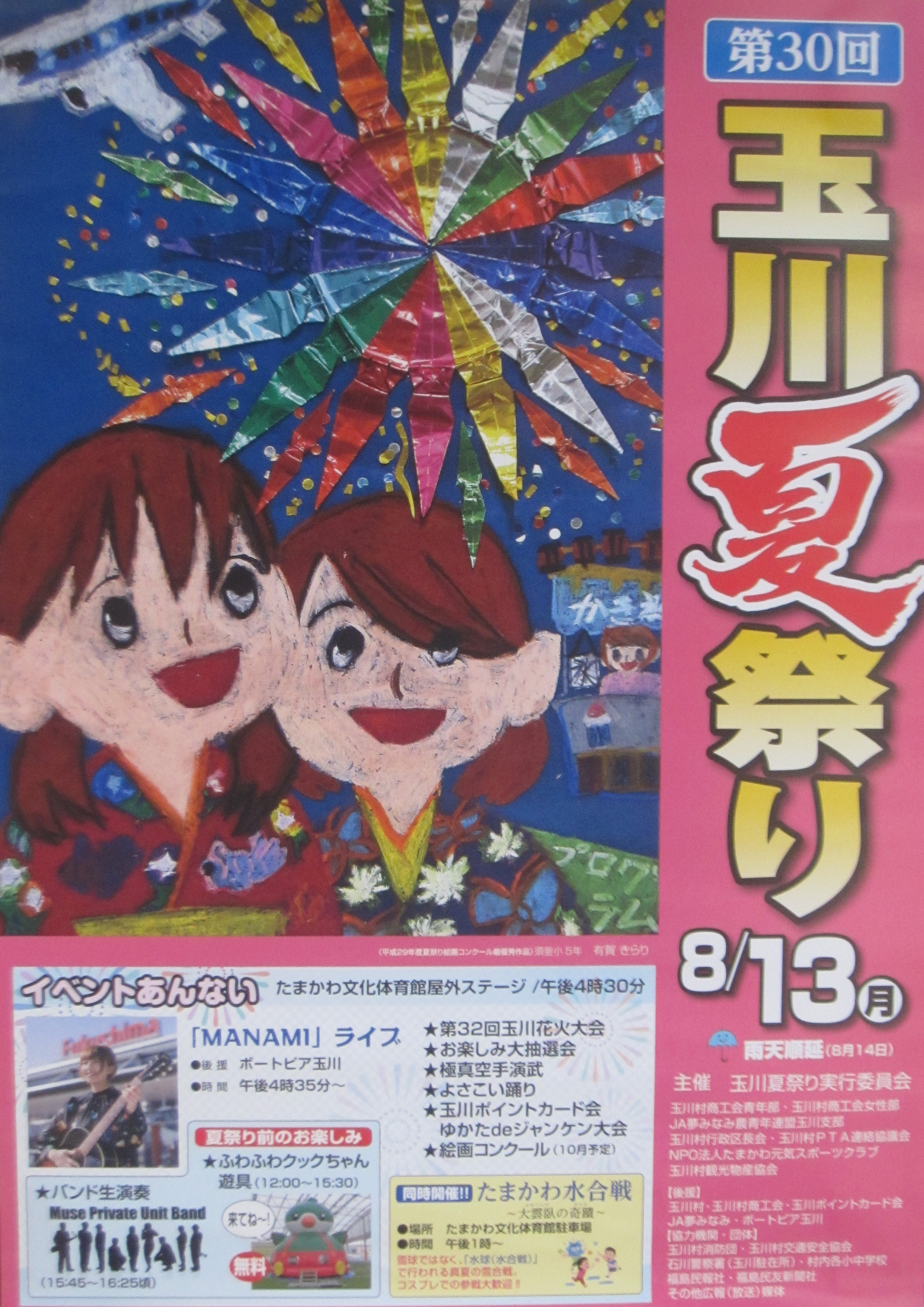 玉川村、たまかわ文化体育館で「第30回 玉川夏祭り」が開催されます。
