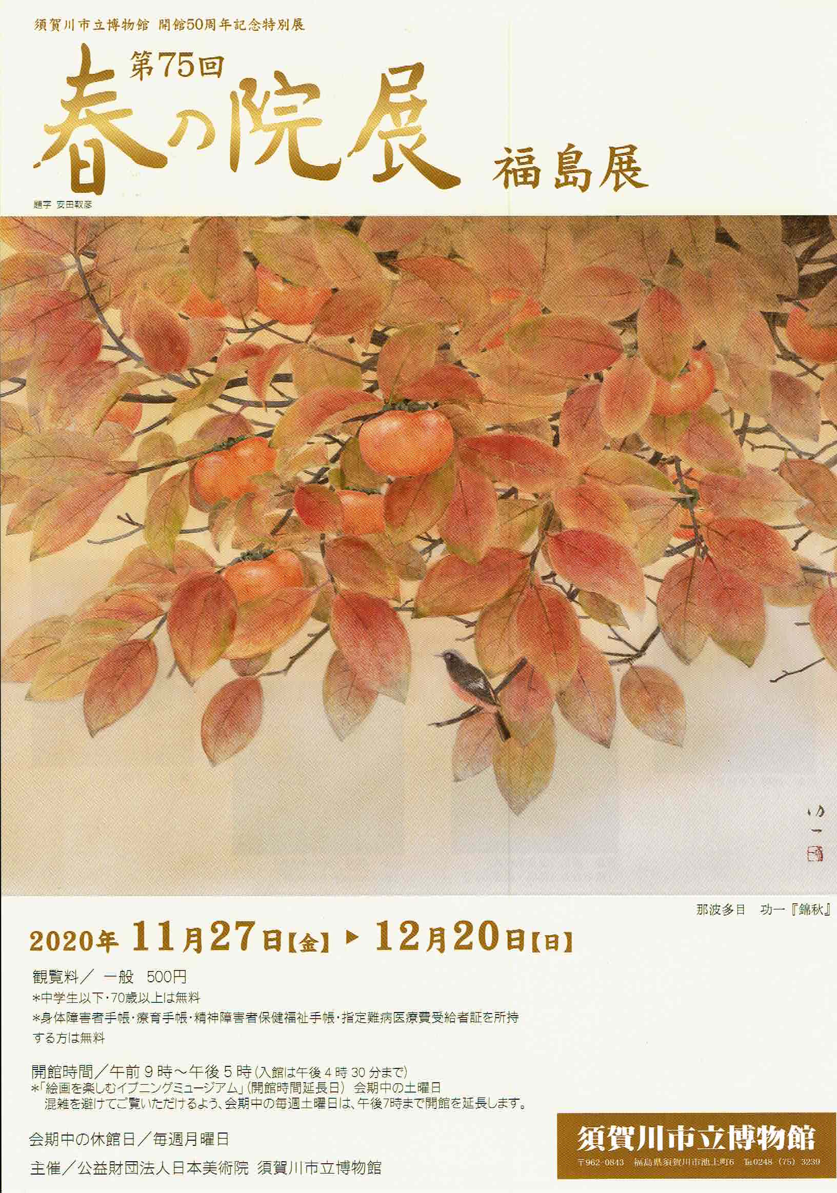 11月27日(金)~12月20日(日)須賀川市立博物館にて『第75回 春の院展 福島展』が開催されます。