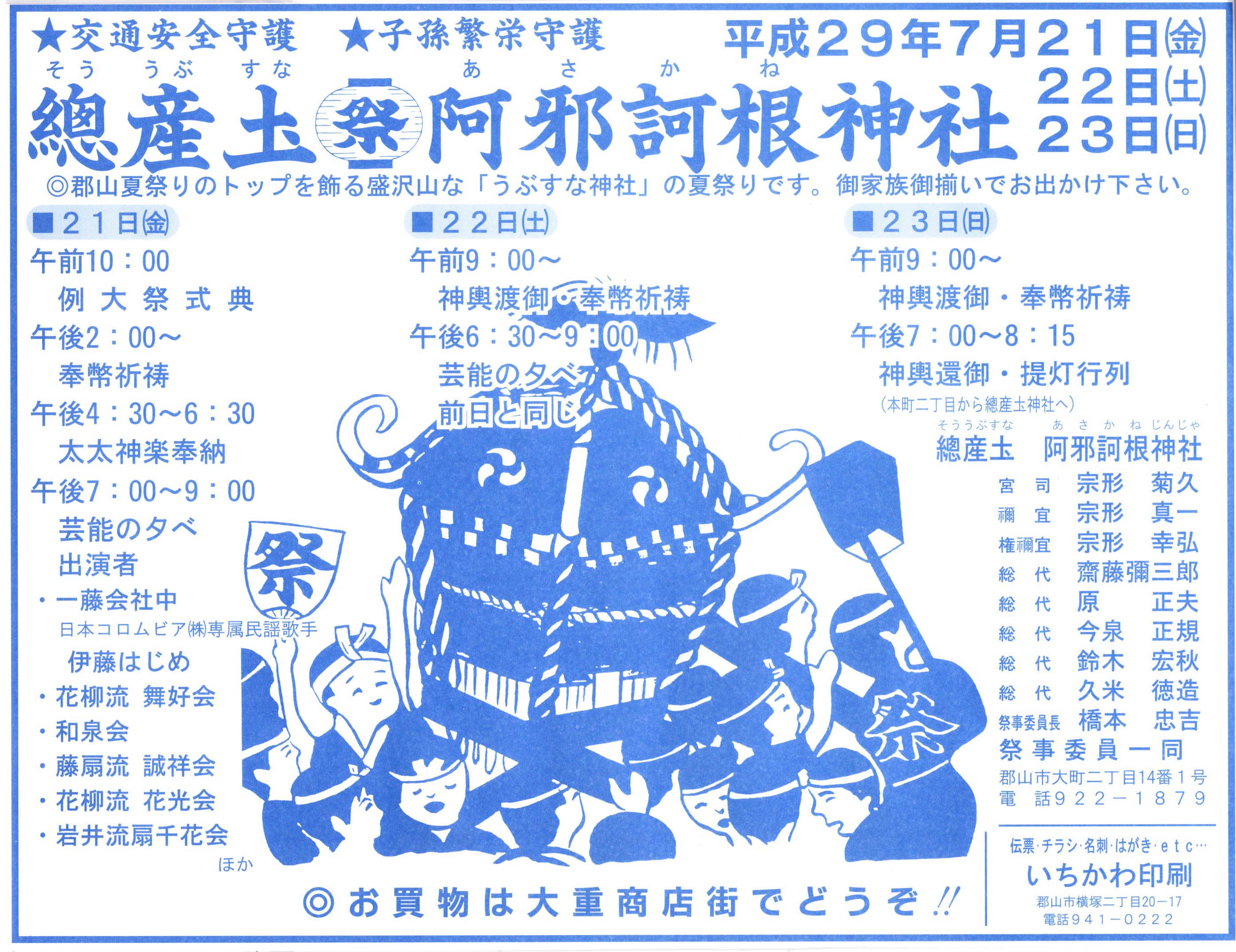 郡山市大町の「總産土阿邪訶根神社(そううぶすなあさかねじんじゃ)」で夏まつりがあります。