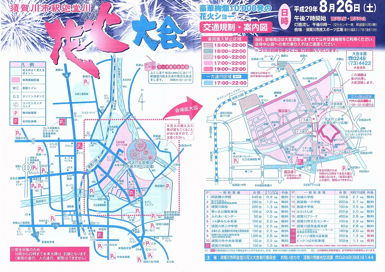 〇お問合わせ:須賀川市釈迦堂川花火大会実行委員会事務局 TEL:0248-88-9144