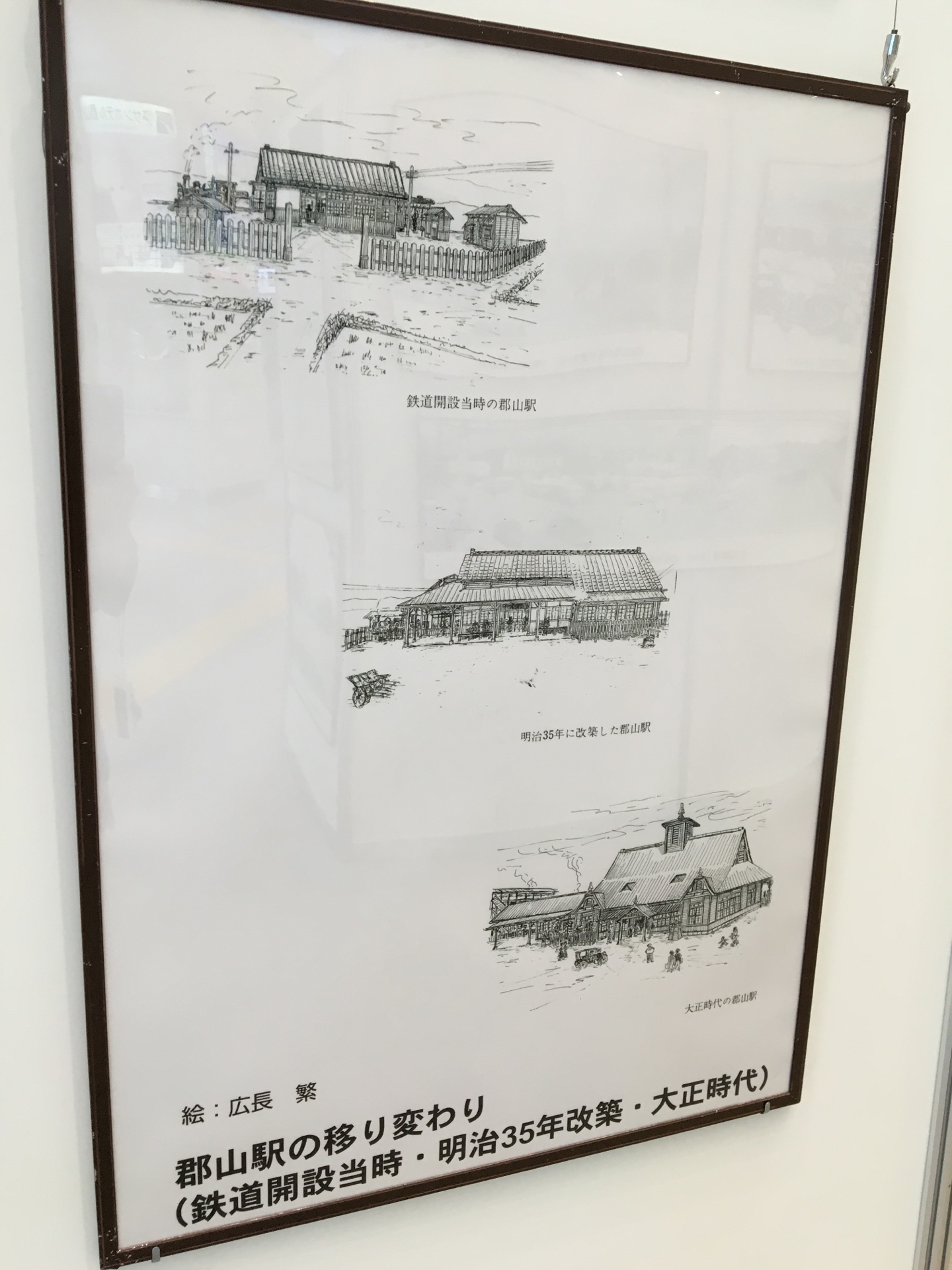 おみやげ館前では、郡山駅開業130周年写真パネル展も開催しています。