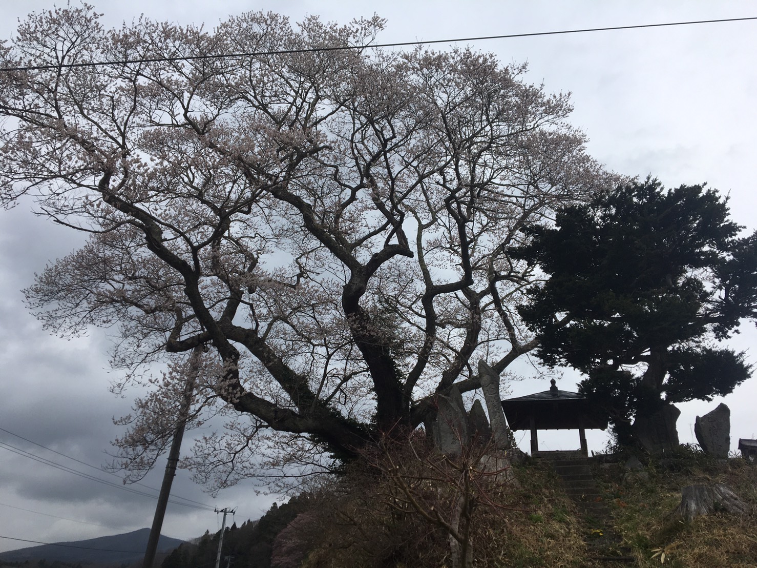 小高い丘の上に立つこちらの桜は、見事な一本桜です。