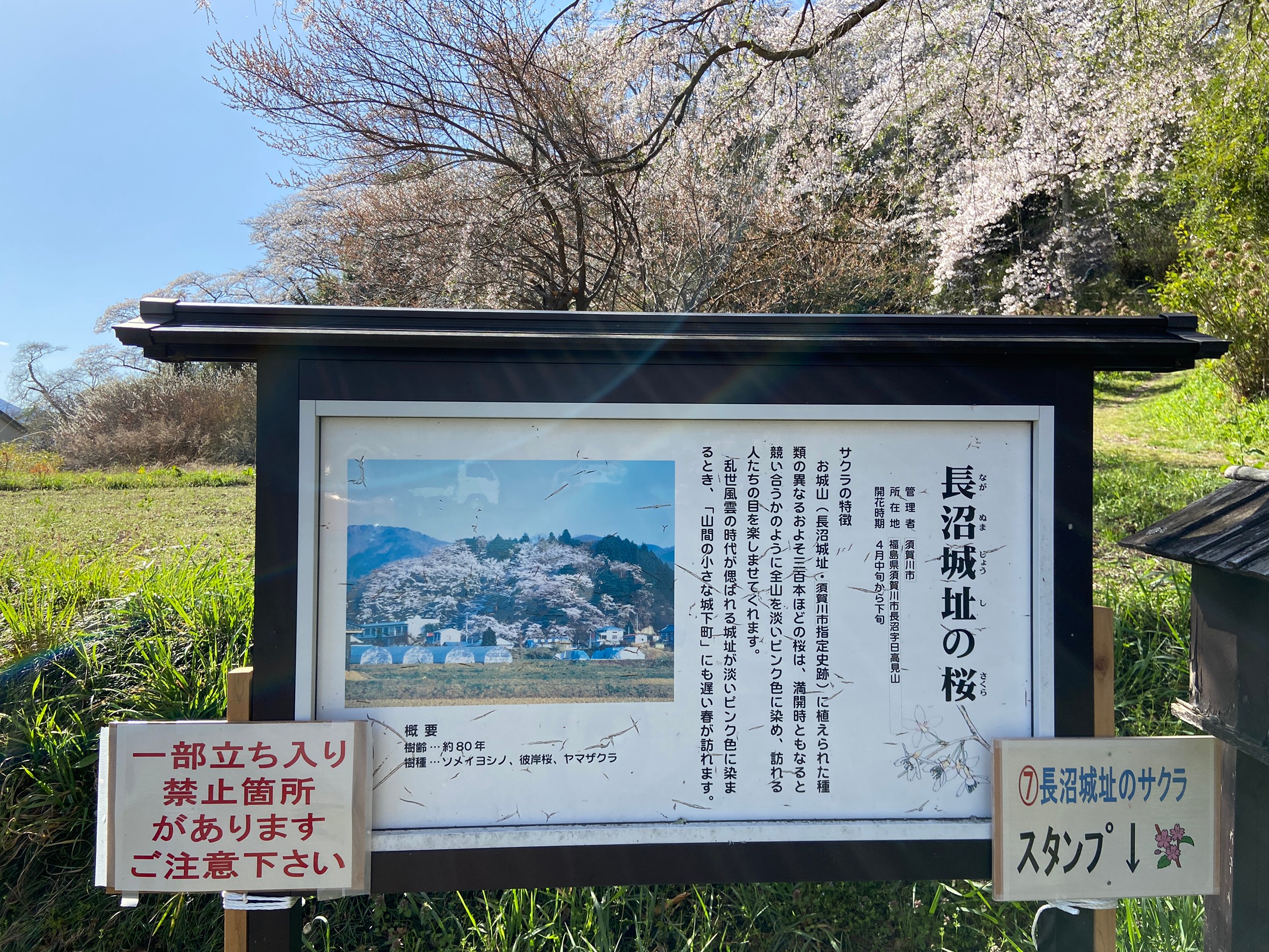 満開で少し散り始めていました。 付近の桜も数多くあるため周りを見渡すと桜に囲まれた景色を楽しむことができます。 ながぬまさくら紀行スタンプラリーも開催中です→コチラ