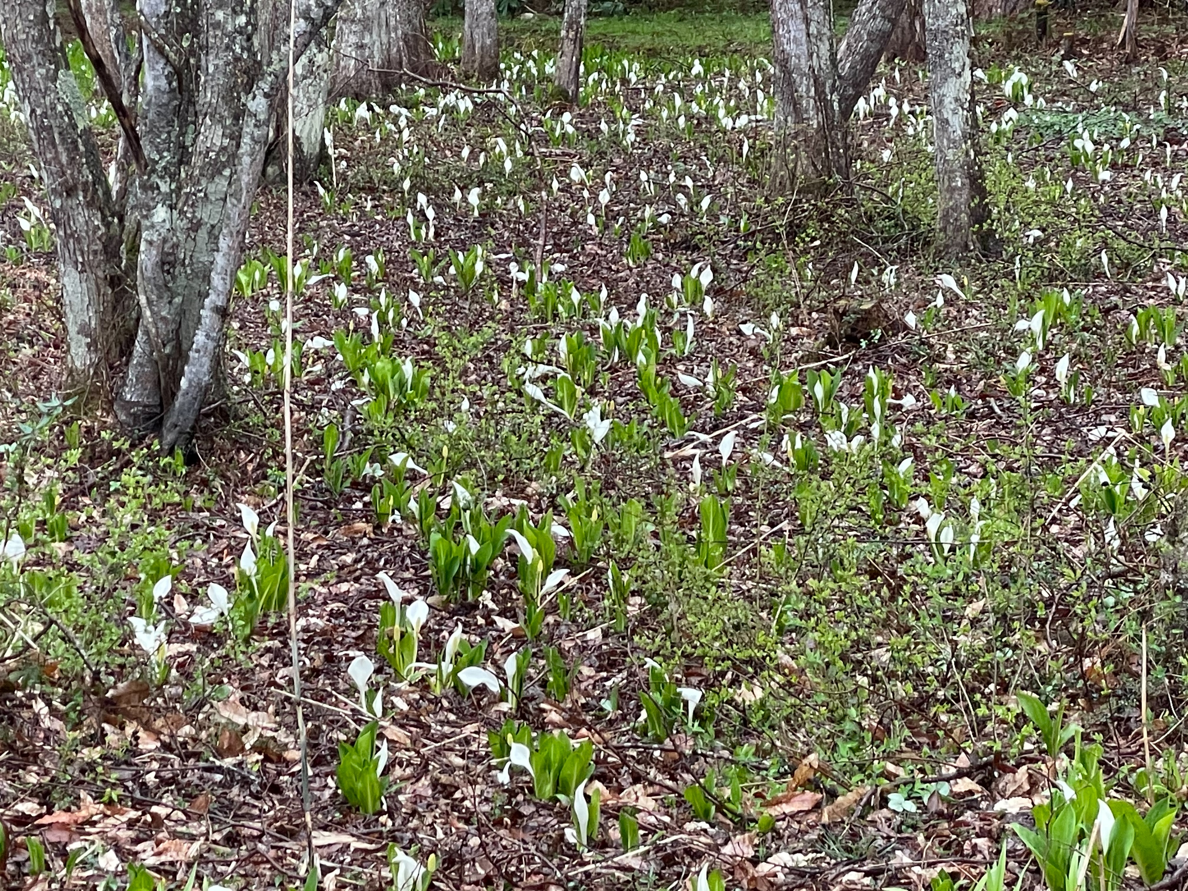 郡山市湖南町にある「馬入新田水芭蕉群生地」では、水芭蕉の白い花が美しく開花していました。