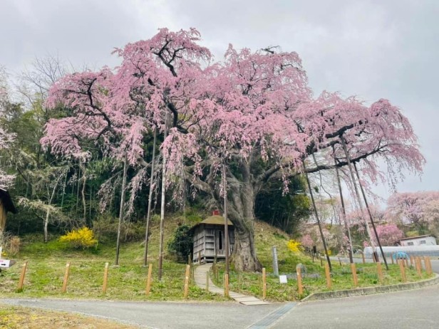 郡山市中田町、上石の不動ザクラ、満開です。郡山市指定天然記念物になっている樹齢約350年の桜です。 …