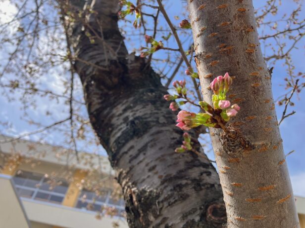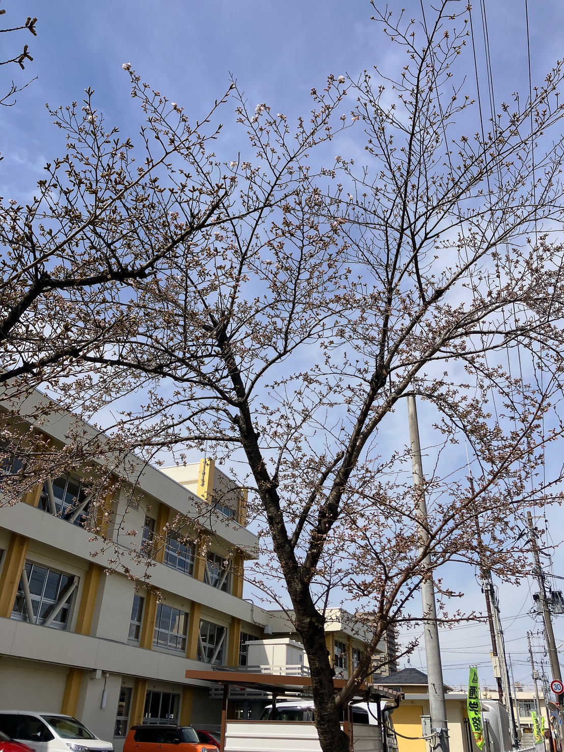 郡山市の赤木小学校の桜です。つぼみが膨らんでいまにもほころびそうです。