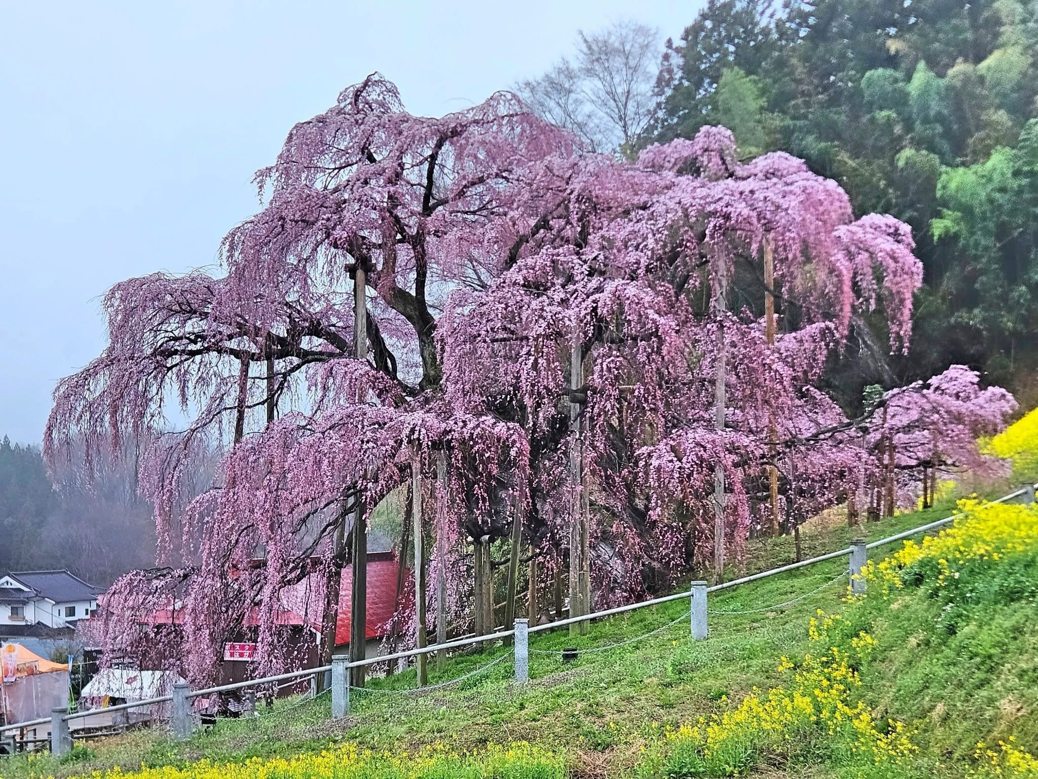 夫婦天神桜満開です。高柴デコ屋敷群の中にある樹齢約500年のヤマザクラで、2本の桜が夫婦のように寄り添います。桜の下のお堂には学問の神様で…