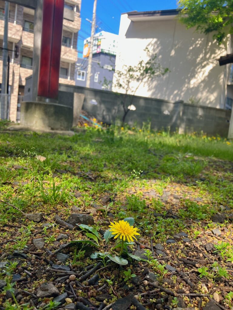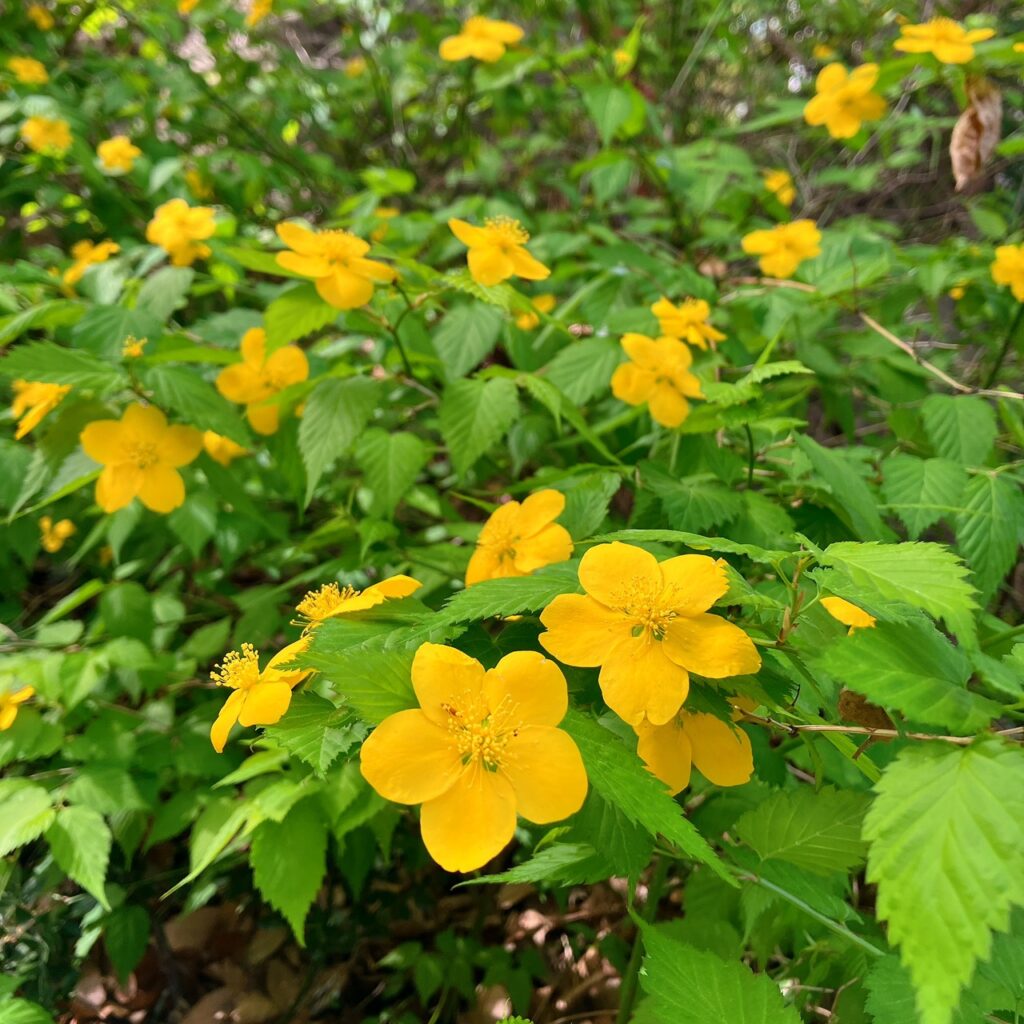 神社ではヤマブキさんとタンポポさんを見つけました。