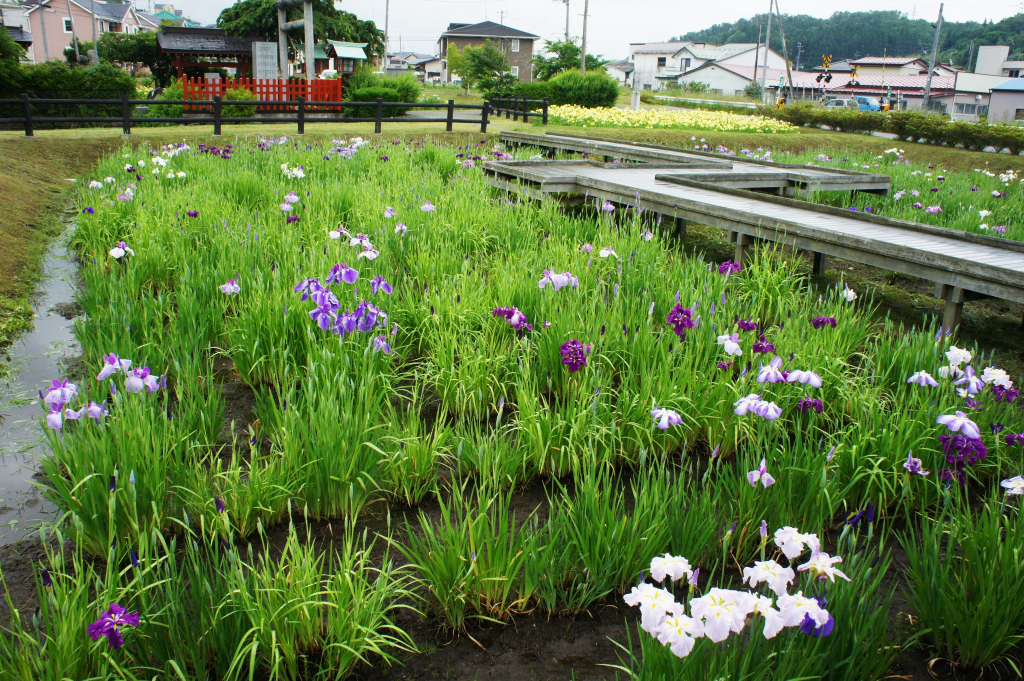 田村市船引町にある大鏑矢(おおかぶらや)ふれあい公園では、ただいまハナショウブが咲き誇っています。