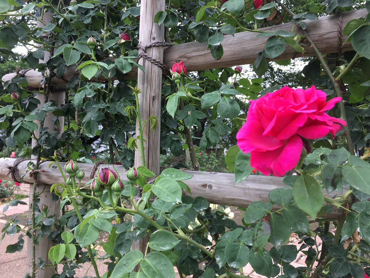 あいにくの曇り空でしたが、たくさんの人がバラ園を訪れていました。