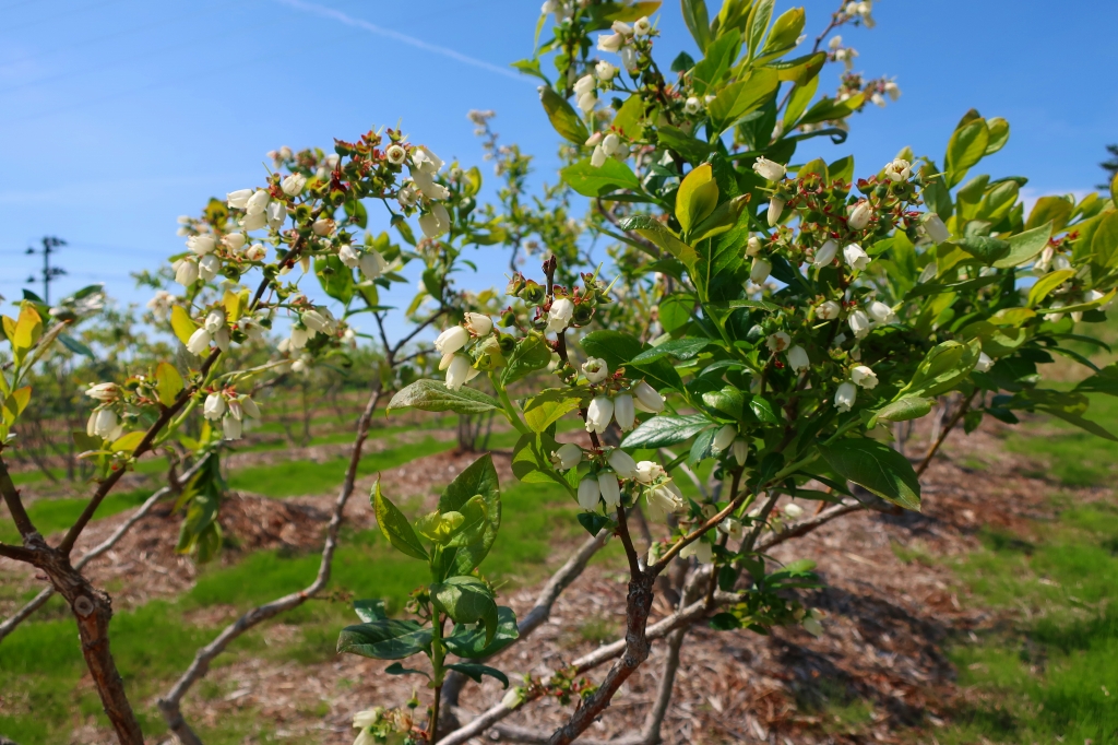 三春町のかおるブルーベリー園では、可愛らしいブルーベリーの花が咲いていました。