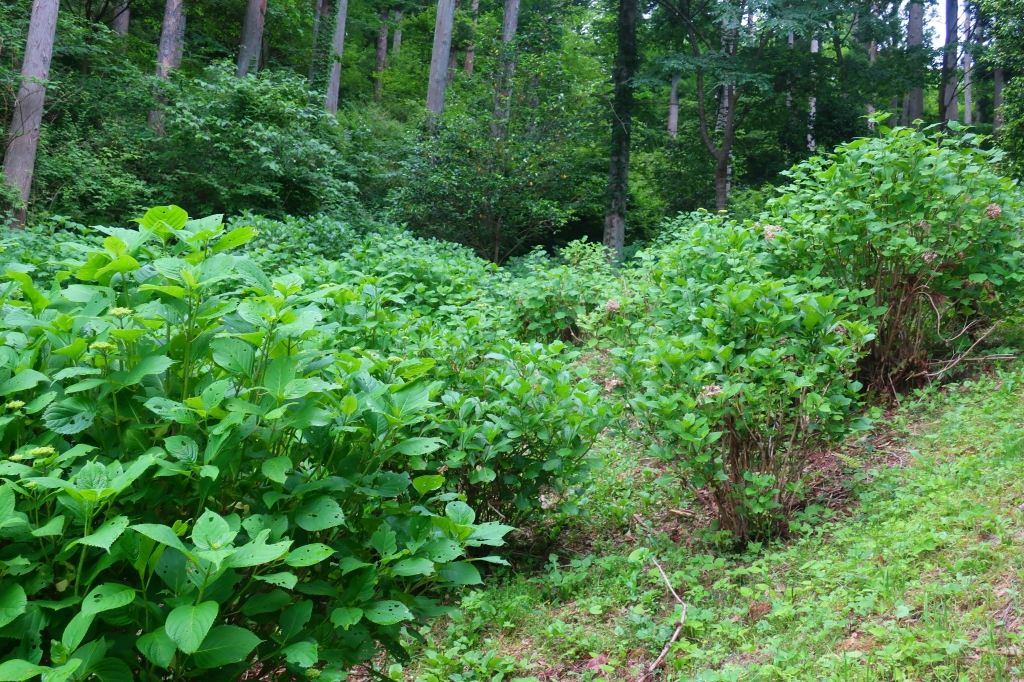あじさいの谷から、広場へぬける散歩コースがあり、立ち寄ってみましたが、開花はこれからのようです。