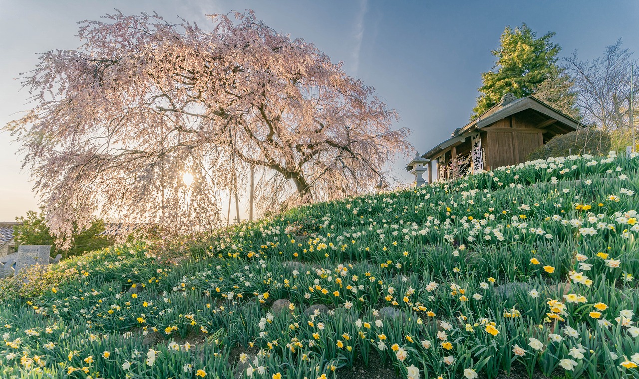 金毘羅桜は、樹齢300年の紅枝垂れ桜。